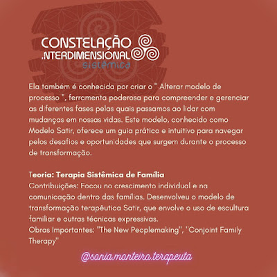 FACILITADORA EM CONSTELAÇÕES SISTÊMICAS INTERDIMENSIONAIS. Idealizadora do Sistema AMA-ThE, inspirado pelas esferas superiores de Luz, para Expansão de Consciência, Jornada Espiritual e Tratamento Multidimensional.